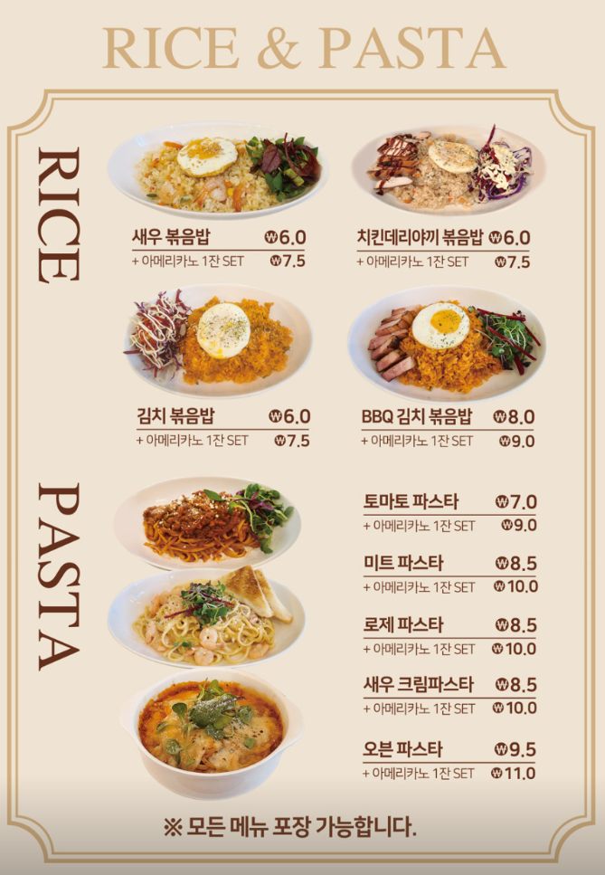 볶음밥, 파스타뿐만 아니라 샌드위치와 각종 음료를 판매하고 있는 곳입니다.