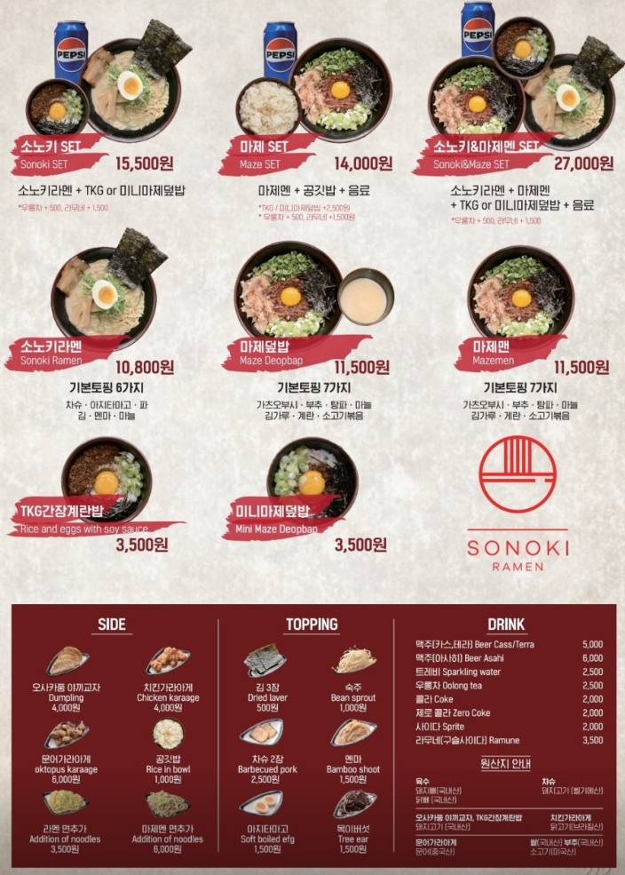 총 2번 방문해 보았고 '소노키라멘과 마제맨' 2가지 음식을 먹어보았습니다.
