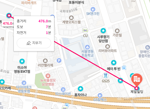 제가 잠시 근무를 했었던 제일빌딩(서울 영등포구 버드나루로 84) 건물을 기준으로 한 번이라도 점심식사를 했던 식당 목록, 기억나는 메뉴와 가게의 장•단점에 대해 적어보겠습니다.